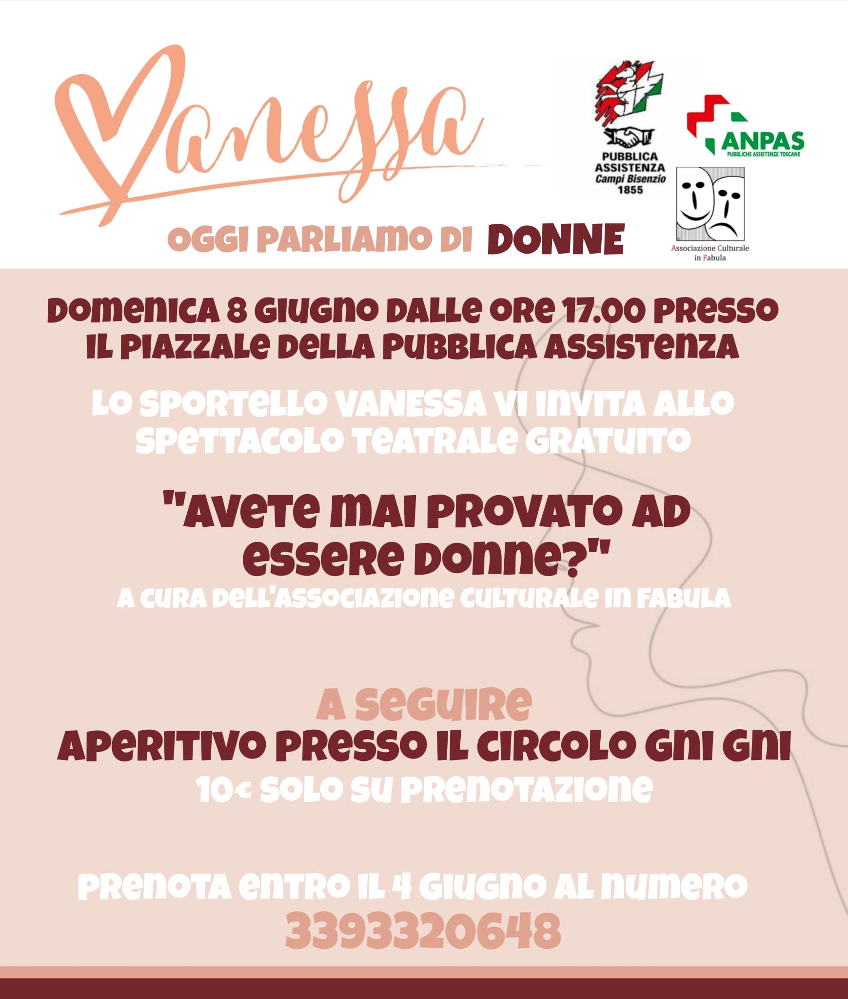 Domenica 8 giugno dalle ore 17.00 presso il piazzale della PUBBLICA ASSISTENZA va in scena “avete mai provato ad essere donne?”